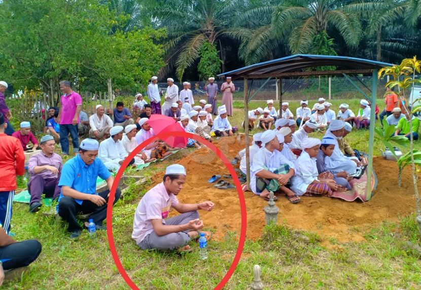 "Sewaktu berada di kubur, saya perasan seorang lelaki berbaju merah jambu, saf paling hadapan. Saya nampak mulut dia tak henti-henti berdoa dan berzikir.