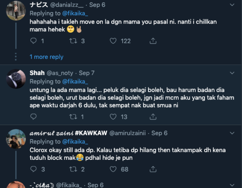 “Mama kata dia sayangkan saya dan kalau ada apa-apa masalah terus beritahunya,” demikian kongsi Fika.
