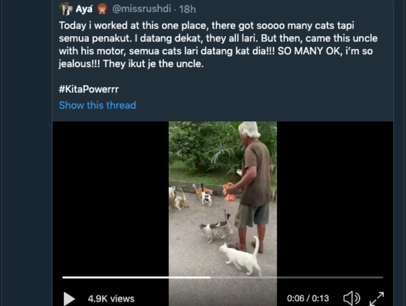 “Saya ada bercakap dengan pakcik tu. Dia cakap selalu datang ke sini (Selangor Turf Club) untuk memberi kucing-kucing itu makan.