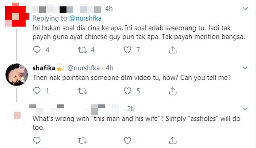 Terdapat individu menegur tindakan Shafika yang menyentuh isu perkauman.