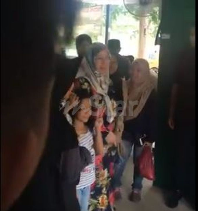 Tunku Azizah keluar dari kereta sambil menunjukkan isyarat untuk makan di premis berkenaan.