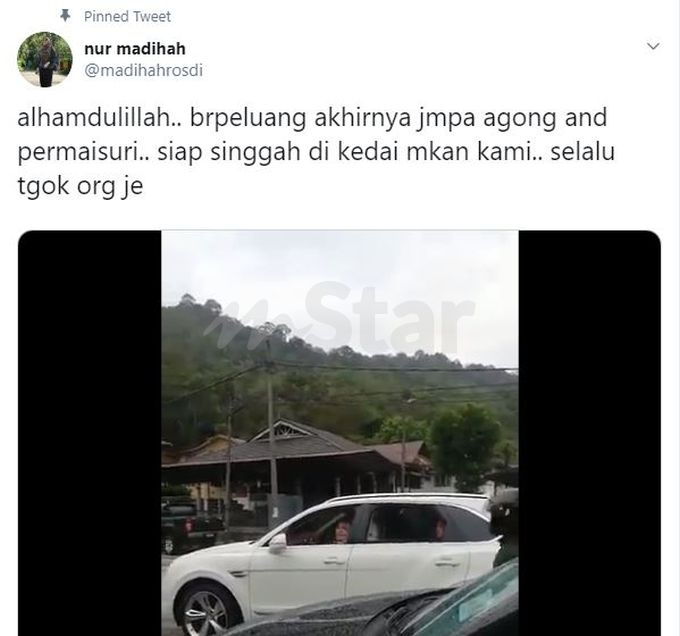 “Alhamdulillah, berpeluang akhirnya jumpa Agong dan Permaisuri. Siap singgah di kedai makan kami... selalu tengok orang je,” tulis Nur Madihah di laman sosial.
