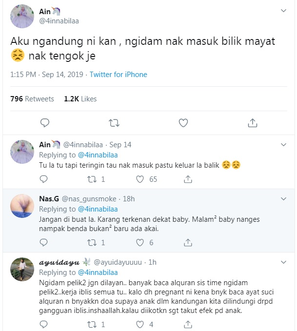 Lain pula dengan keinginan seorang bakal ibu muda yang meluahkan rasa mengidam untuk melihat bilik mayat.