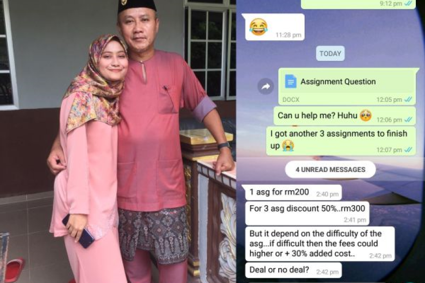 Ujar penuntut jurusan Pengurusan di Open University Malaysia (OUM) ini, lazimnya tugasan akan dilakukannya sendiri namun dek kekangan masa kerana bekerja, dia mencuba nasib untuk meminta bantuan bapanya.