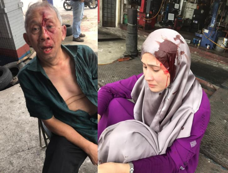 “Saya sendiri luka di bahagian dahi dan menerima tiga jahitan, selain rahang berasa sangat sakit akibat hantukan kepalanya.