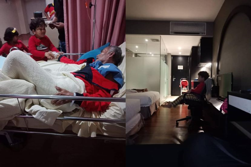 Aqil ketika menziarahi datuknya yang sedang dirawat di sebuah hospital swasta berdekatan tempat penginapan mereka.