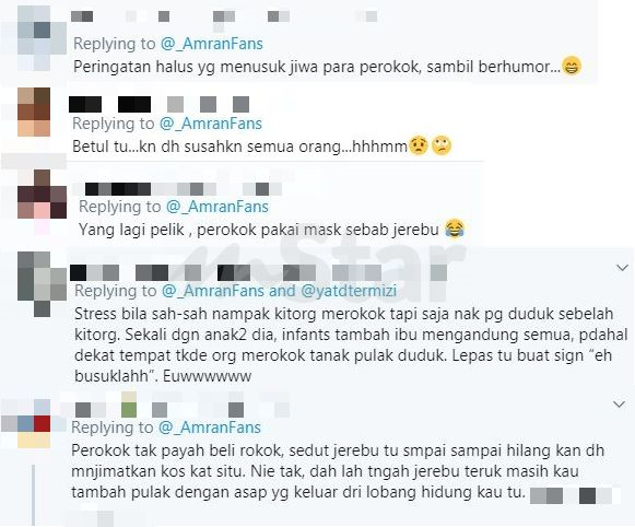 Bagaimanapun, terdapat komen netizen yang meletakkan kesalahan kepada orang awam apabila perokok menghisap rokok di tempat awam.