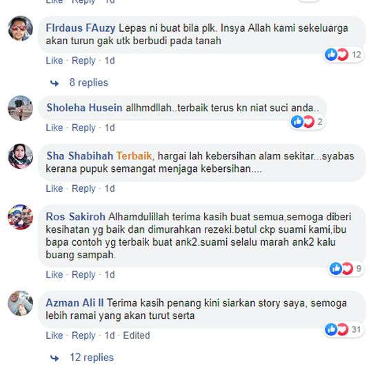 Terdahulu, posting mengenai aktiviti sukarela tersebut yang dikongsi di sebuah laman Facebook mendapat ratusan perkongsian (share) dengan rata-rata netizen memberi reaksi positif.