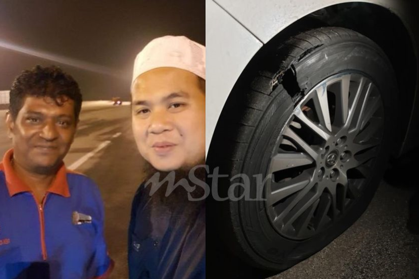 Kenderaan dinaiki Ustaz Ebit termasuk empat kenderaan lain melanggar besi besar dan panjang di lebuh raya.