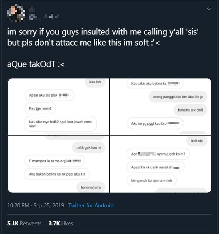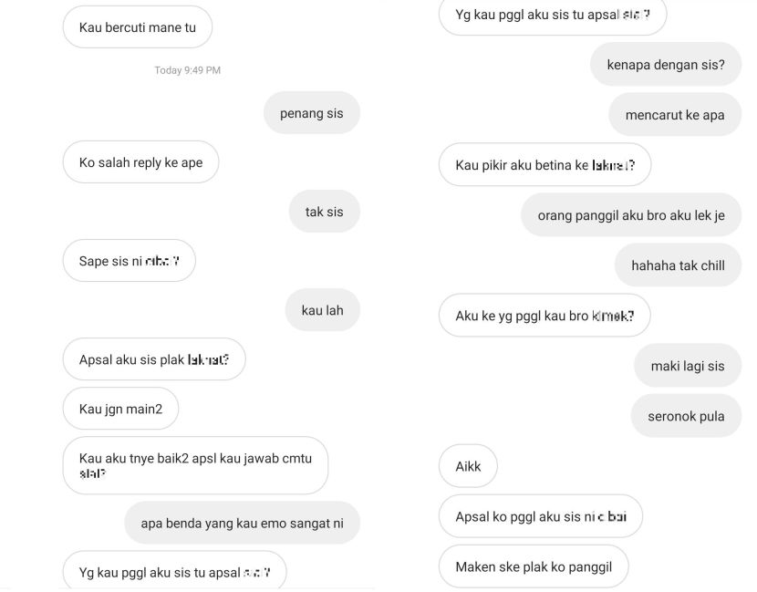 Lain pula ceritanya dengan gadis ini yang dimaki akibat menggelarkan rakan lelakinya sebagai 'sis' (sister) menerusi perbualan direct message (DM) Instagram baru-baru ini.