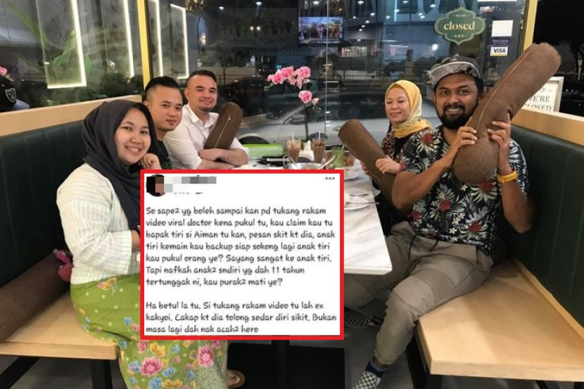 "Jadi siapa-siapa yang boleh sampaikan pada tukang rakam video viral doktor kena pukul tu, kau claim kau tu bapak tiri si Aiman tu kan, pesan skit kat dia, anak tiri bukan main kau backup siap sokong lagi anak tiri kau pukul orang ye?
