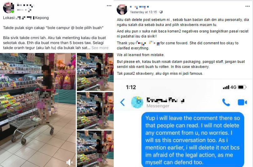 Demikian kata seorang ibu muda mengenai tindakannya berkongsi gambar dan video di Facebook menunjukkan seorang pembeli wanita sedang 'teliti' memilih buah strawberi yang sudah dibungkus di sebuah pasar raya.