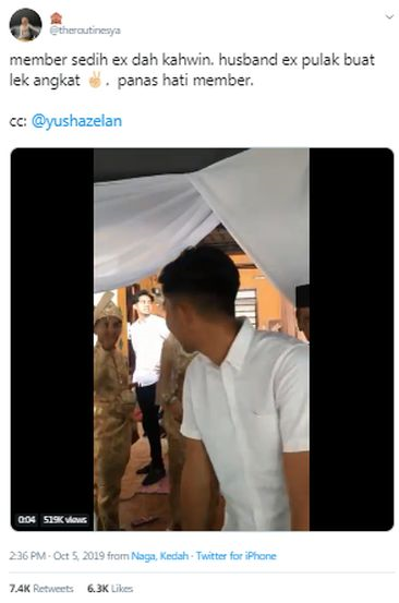 "HATI lu kental bro. Kalau aku fikir 300 kali datang ke tak kenduri tu!" Itu antara kata-kata netizen yang kagum dengan tindakan seorang pemuda yang dilihat tidak kekok menghadiri majlis perkahwinan bekas kekasihnya. Menerusi video perkongsian seorang gadis di Twitter, pemuda tersebut turut tenang apabila suami kepada bekas kekasihnya memberikan isyarat 'peace' sebelum kedua-duanya berjabat tangan. ARTIKEL BERKAITAN: Bakal mertua tak suka Kelantan alasan putus, bekas awek syak lain, “Mungkin itu alasan saja” ARTIKEL BERKAITAN: Bekas kekasih tak suka orang Kelantan, pemuda tawar cincin ‘free’ gara-gara bertunang tak jadi Video berdurasi lapan saat itu mendapat lebih 500,000 tontonan dan 6,200 tanda suka di Twitter. Video gelagat Yus menghadiri majlis kahwin bekas kekasihnya tular di Twitter. Pemuda tersebut yang dikenali sebagai Yushazelan Yugasila berkata dia hadir ke kenduri tersebut yang berlangsung di Jitra, Kedah pada Sabtu lalu setelah menerima jemputan daripada bekas kekasihnya. "Saya dan ex OK je. Kami kenal dah tiga tahun cuma couple sekejap je... enam bulan macam tu. Lepas tu kami masih kawan sebab keluarga dia dah macam keluarga angkat saya. "Saya datang pun sebab ex sendiri yang jemput. Masa dia balik Kelantan Raya Haji tempoh hari, dia ajak datang beraya kat rumah. Masa tulah dia bagi sendiri kad jemputan kahwin dia. "Waktu tu saya terkejutlah jugalah. Saya ingatkan dia main-main sebab sebelum ni tau je dia dah bertunang tapi tak sangka dah nak kahwin pula. Biarlah dah jodoh dia," katanya kepada mStar. Mesra disapa Yus, pemuda dari Pasir Puteh, Kelantan itu berkata dia tidak bersedih melihat bekas kekasihnya itu berkahwin dengan orang lain. Yus kini hanya berkawan biasa dengan bekas kekasihnya. "Waktu tu saya tak tahu member saya rakam video. Masa dah balik barulah saya tahu video tu dah viral. "Saya tak sedih pun. Perasaan waktu tu saya just nak dia bahagia. Saya dah kenal dan tahu dia jenis macam mana, jadi saya doakan yang terbaik untuk hubungan mereka. "Tapi bila ex tiba-tiba datang dari belakang dengan husband dia siap tunjuk isyarat peace waktu tu memang saya terkejut... tapi saya OK je," kata penuntut Politeknik Sultan Abdul Halim Mu'adzam Shah (POLIMAS) di Jitra, Kedah itu. Saya datang pun sebab ex sendiri yang jemput. Masa dia balik Kelantan Raya Haji tempoh hari, dia ajak datang beraya kat rumah. Masa tulah dia bagi sendiri kad jemputan kahwin dia. YUSHAZELAN YUGASILA PENUNTUT POLIMAS Sementara itu, pemuda berusia 22 tahun itu turut menasihati orang ramai supaya tidak bermusuhan dengan bekas kekasih masing-masing. "Jangan bermusuh walaupun dia ex kita. Allah dah aturkan segalanya. Mungkin kita bukan jodoh dia... mungkin jodoh kita lebih baik dari dia. "Kalau dah putus tu tak payah gaduh-gaduhlah. Benda tu tak memberi manfaat langsung dalam kehidupan kita. Dua-dua kena move on," katanya. Yus bersama suami bekas kekasihnya. Susulan video yang tular itu, beberapa netizen turut berkongsi pengalaman mereka mengenai perkara itu. "Benda ni buat aku teringat masa wedding akak aku. Bila ex kakak aku datang dia suruh aku layan sebab dia malas nak layan (tak nak suami dia tahu). Bukan satu ye kawan-kawan tapi ex dia dari menengah sampai kolej. Masalahnya datang masa yang sama aduh penat aku nak layan semua. Moral jangan ada ex," tulis Fanto. "Ex aku rilek je datang wedding aku dan ambil gambar dia duduk tengah-tengah. Kemudian waktu wedding dia aku datang dengan wife aku. Mungkin sebab kitaorang berpisah with a good term," kata Darth One. "Aku faham perasaan dia. Aku pun pernah jadi macam dia. Tapi makanan time wedding ex aku sedap so aku tambahlah dua kali supaya kurang sedih di muka tu sikit," kata Fadzilnoir. View this post on Instagram Memang kental hati bro ni... semoga bertemu jodoh yang lebih baik ? Kredit video Yushazelan Yugasila #mstarkongsi #janganseriussangat #mstaronline #mstarSS A post shared by mStar (@mstaronlineofficial) on Oct 10, 2019 at 2:18am PDT