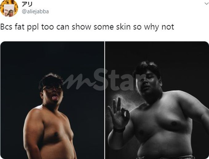 “Kerana orang gemuk juga boleh tunjuk sebahagian badan, kenapa tidak?” menurut perkongsian pemuda itu di laman sosial Twitter.