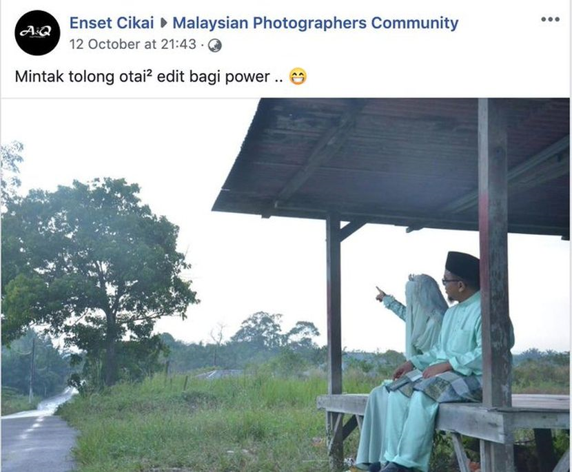 Foto berkenaan kemudiannya dikongsi menerusi grup Facebook Malaysian Photographers Community dengan kapsyen: "Minta tolong otai-otai edit bagi power.