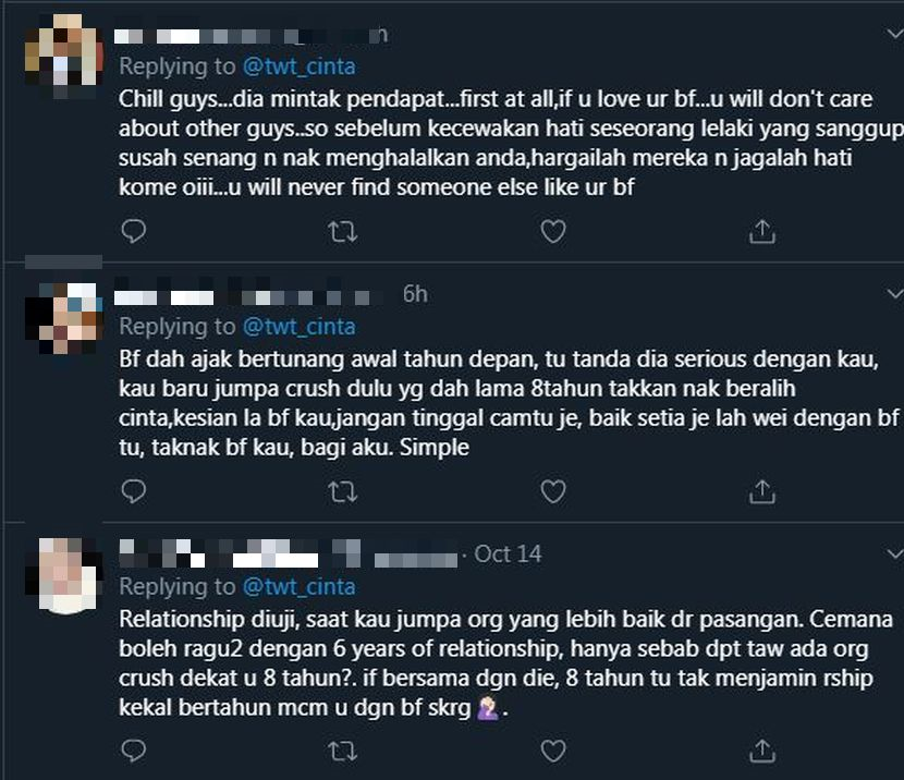 Luahan gadis itu disiarkan menerusi Twitter @twt_cinta.