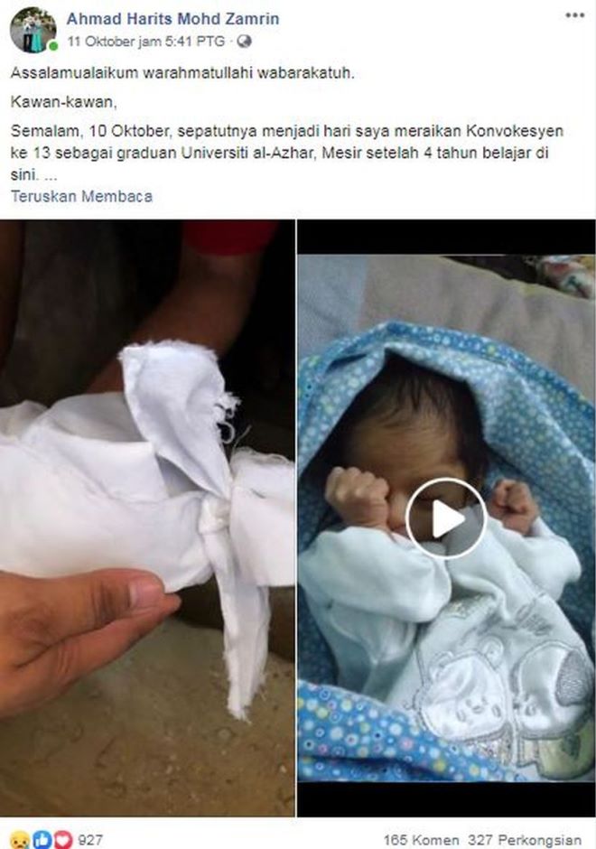 Posting Harits yang juga salah seorang graduan di Universiti al-Azhar, Mesir mendapat perhatian ramai dengan meraih 327 perkongsian dan 924 tanda suka.