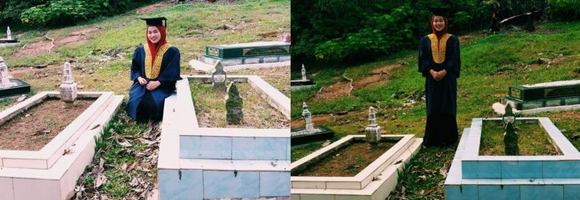 Malah gadis berusia 23 tahun ini berjaya menghadiahkan segulung Diploma dalam Seni Lukis dan Seni Reka buat arwah ibu dan bapanya, sekali gus membuktikan dia seorang insan yang tabah.