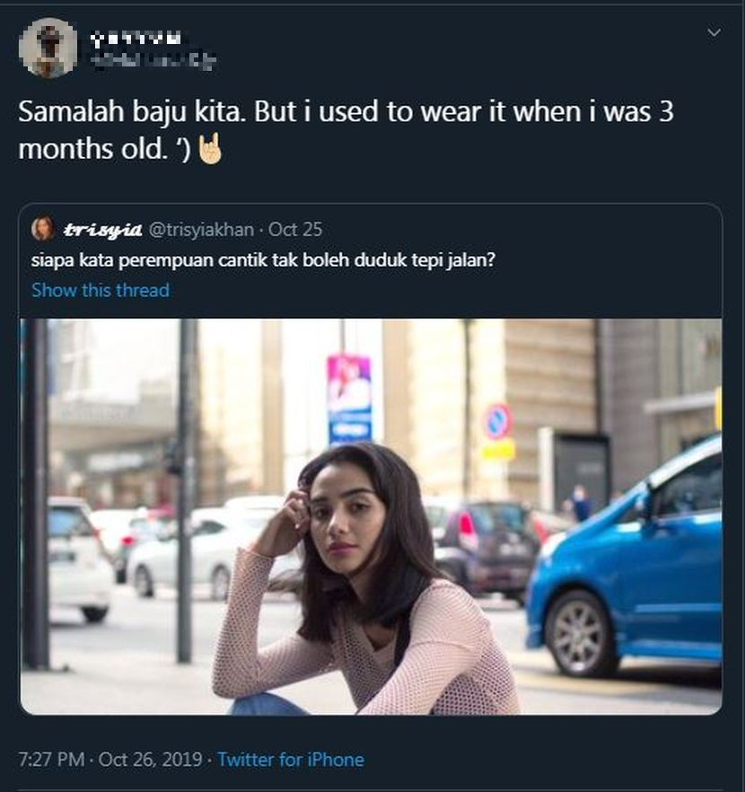 Dalam pada itu, Trisyia mengakui kurang senang dengan komen seorang individu yang disifatkannya sebagai melampau.