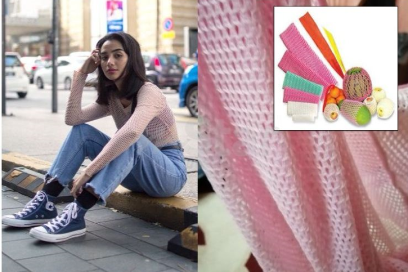 Dalam foto tersebut, Ainin Batrisyia Mohd Termizi, 19, menggayakan baju berwarna merah jambu dari fabrik lubang-lubang kecil yang disamakan dengan baju bayi.