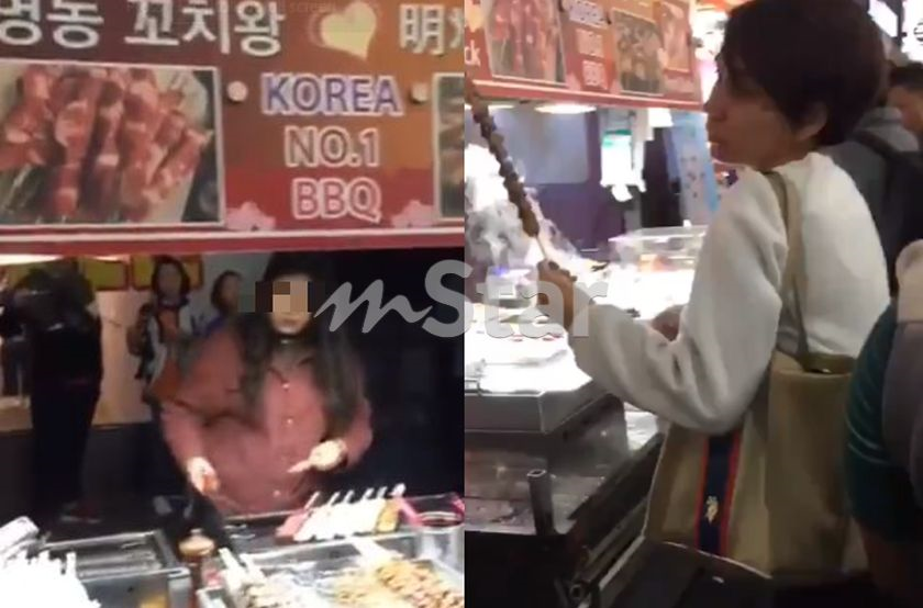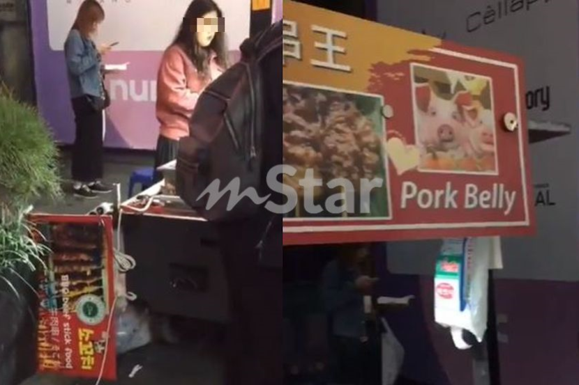 Video berdurasi 23 saat yang dikongsi pemuda berusia 28 tahun itu menunjukkan papan tanda berlogo halal diletakkan di bawah meja niaga salah satu gerai makanan di Myeondong.