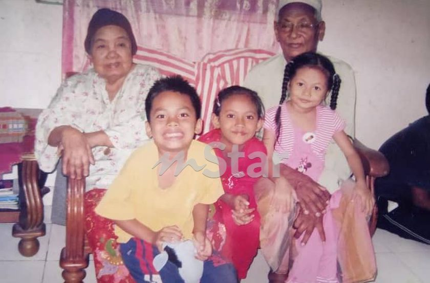 Tinggal kenangan... Muhammad Habib (baju kuning) sewaktu kecil bersama arwah opah dan tokwannya.