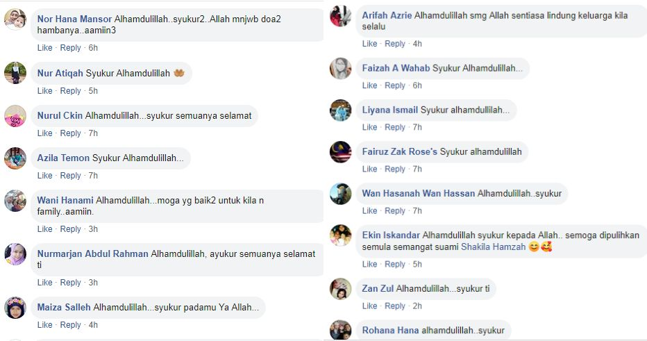 Antara komen netizen yang turut sama mengucapkan syukur dengan perkembangan terbaharu mengenai kepulangan suami Shakila.