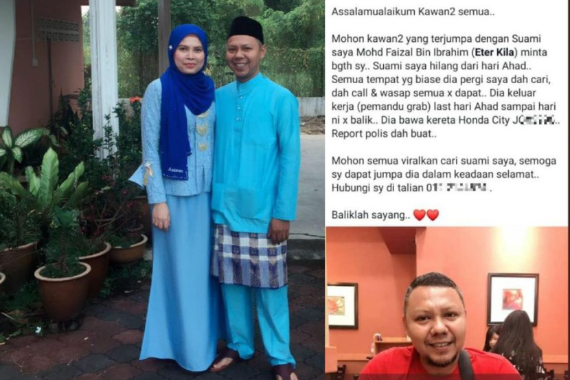 Ketika dihubungi mStar, wanita yang bernama Shakila Hamzah itu berkata, suaminya Mohd Faizal Ibrahim keluar dari rumah mereka di Larkin, Johor pada Ahad lalu untuk mengambil penumpang.
