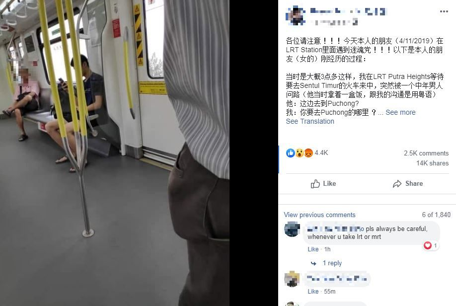 Berlaku sekitar jam 3 petang, wanita itu dihampiri seorang lelaki yang bercakap dalam dialek Kantones sewaktu sedang menunggu ketibaan tren di Stesen Sentul Timur.