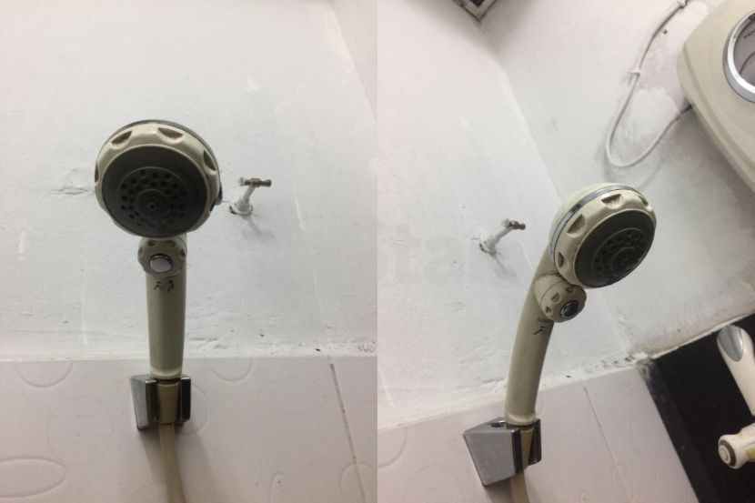 "Shower tu ada button untuk tukar jenis semburan air. Tapi ia rosak, jadi saya ketuklah pada dinding.