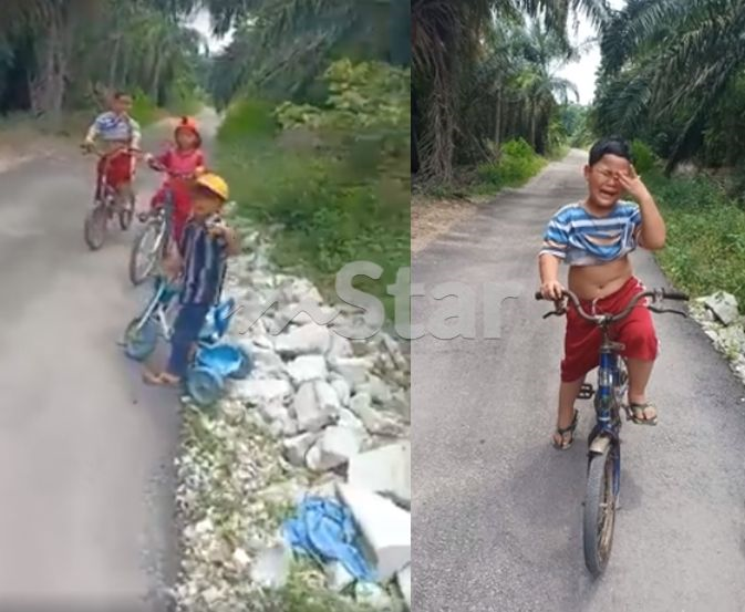 Demikian kata seorang lelaki dalam video yang mengusik seorang kanak-kanak lelaki berbadan montel bersama dua rakannya yang sedang merayau menaiki basikal di tempat sunyi dalam kawasan ladang kelapa sawit.