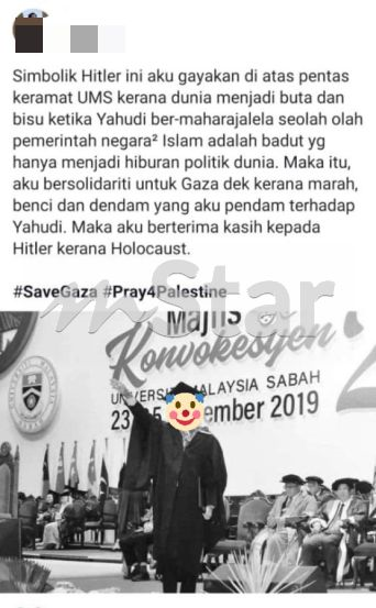 SELEPAS dikecam hebat gara-gara menunjukkan simbol Nazi sewaktu majlis konvokesyen Universiti Malaysia Sabah (UMS) pada Sabtu lalu, pemuda berkenaan akhirnya bersuara mengenai perkara itu.