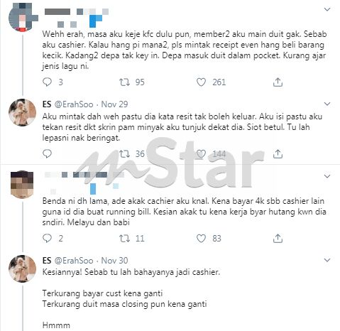 Tindakan tidak bertanggungjawab juruwang itu turut membuatkan ErahSoo terfikir untuk berkongsi pengalamannya itu kepada orang ramai.