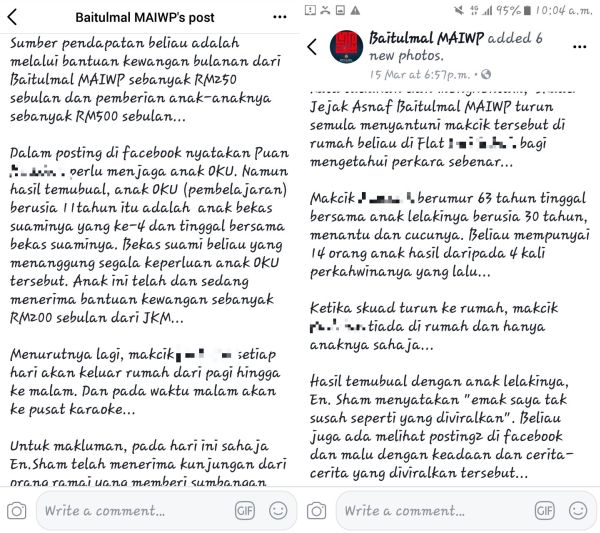 Seorang pelayar memuat naik tangkapan skrin kenyataan daripada badan Baitulmal mengenai wanita warga emas berkenaan.