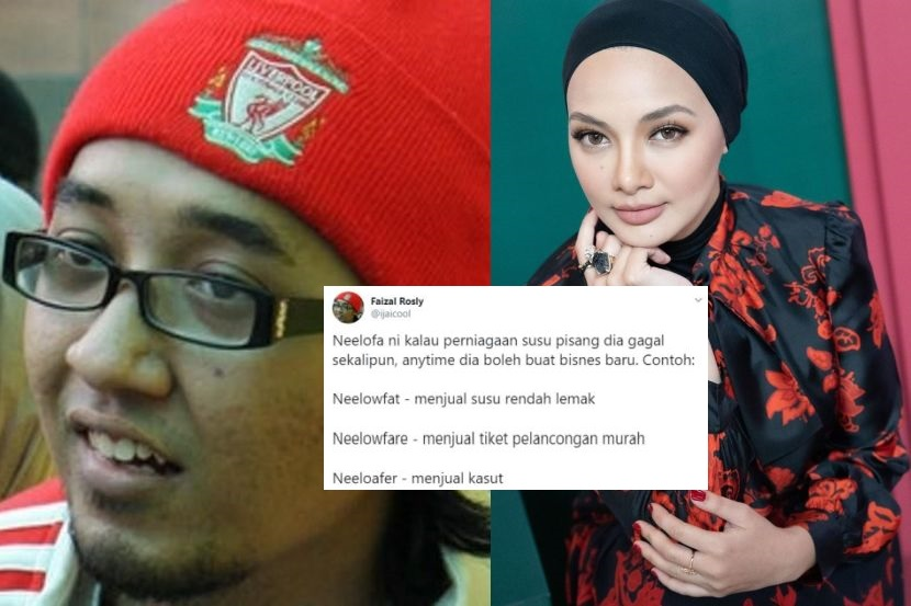 “Neelofa ni kalau perniagaan susu pisang dia gagal sekalipun, bila-bila masa dia boleh buat bisnes baru. Contoh: Neelowfat - menjual susu rendah lemak, Neelowfare - menjual tiket pelancongan murah, Neeloafer - menjual kasut,” menurut tulisan Faizal Rosly menerusi akaun Twitter @ijaicool.