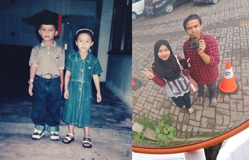 Syafiqah berkongsi gambar transformasi dia dan abangnya ketika masih kecil (kiri).