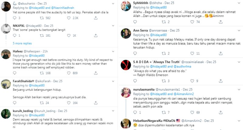 “Tiada apa pun sebenarnya, tujuan saya hanya nak menunjukkan bahawa tak semua anak muda Melayu malas. Masih ada yang rajin mencari rezeki sehingga lewat malam.