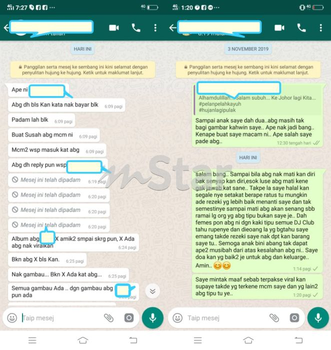 “Saya pun bayar baki selebihnya iaitu RM400 lagi. Tapi selepas bayar, tup tup dia pula hilang. Mesej, WhatsApp, semua tak berbalas. Panggilan pula tak berangkat,” ujar suri rumah berusia 25 tahun ini.