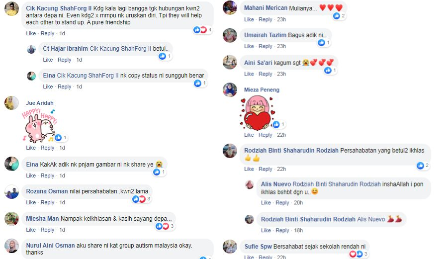 Antara komen netizen yang tersentuh hati melihat keakraban hubungan tiga pelajar istimewa tersebut.