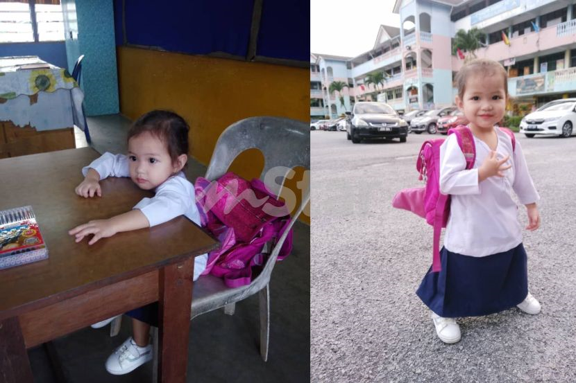 Nayla kata dia nak juga, jadi saya cari pakaian seragam kakak dia yang tahun lepas, beri semangat dia nak ‘bersekolah’ sama