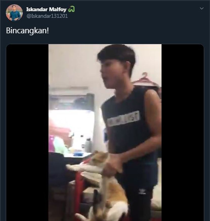Di Twitter, tular video seorang pelajar lelaki berusia 19 tahun, Muhammad Amirul Afiq Mohamad Yusof yang ketakutan akibat disakat oleh rakannya yang memegang seekor kucing.