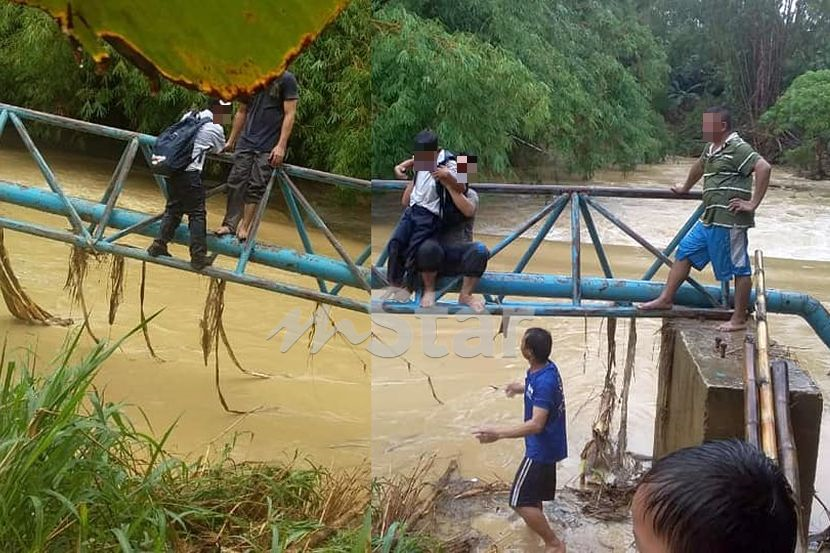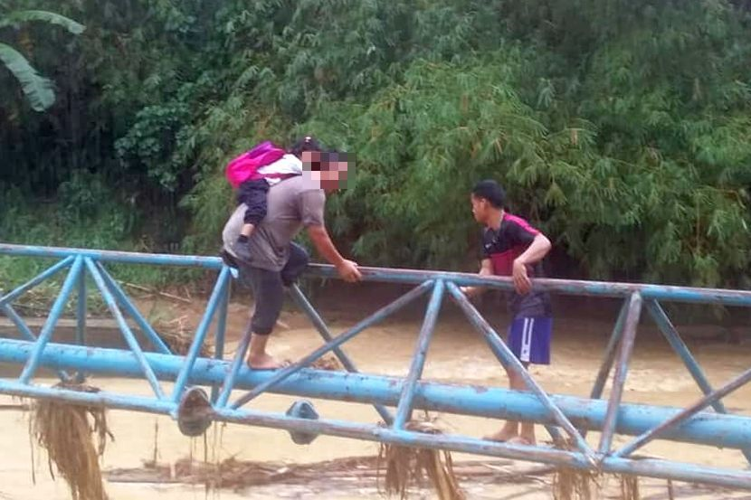 Berdasarkan satu posting yang tular, dapat dilihat kumpulan kanak-kanak tersebut ‘berani mati’ berjalan seorang diri sambil memegang batang besi, malah ada yang hanya berpaut pada leher seorang lelaki lebih dewasa yang sedang menyeberang sungai.