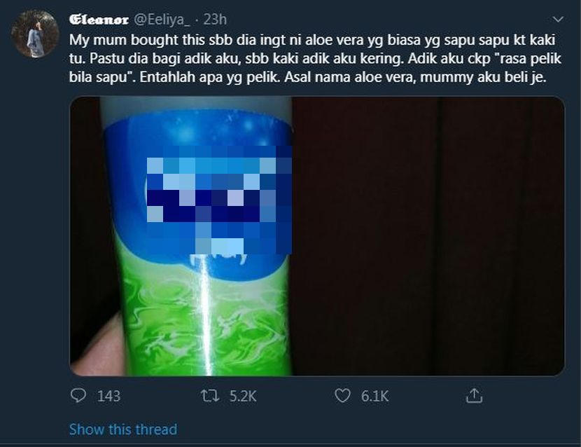 "Tapi saya abaikan sahaja. Memang terkejut tweet tu jadi viral. Sebelum ni pun kami pernah je beli gel aloe vera jenama lain.