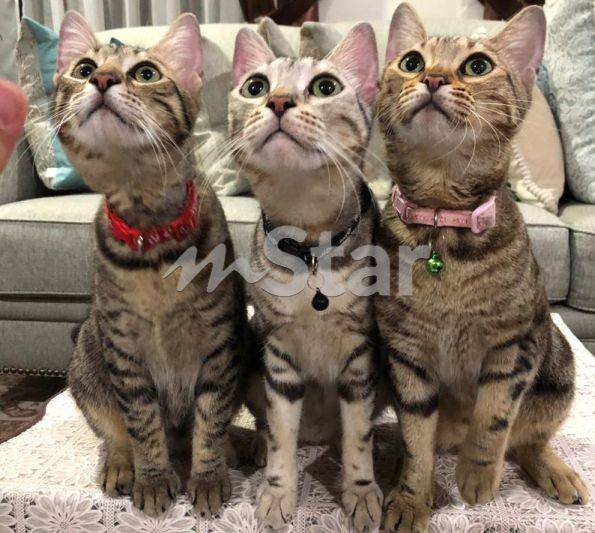 Tiga daripada empat kucing peliharaan keluarga Arash Muaz iaitu Bob (kiri), Peppa dan Coco.