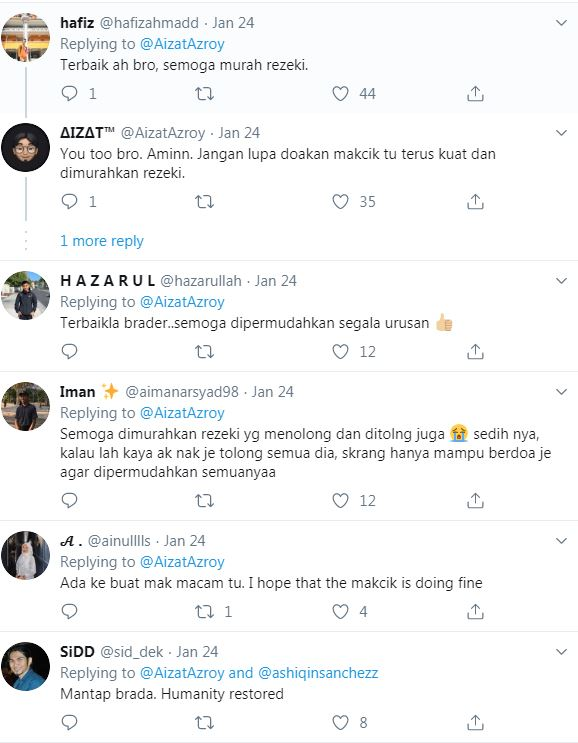 Ramai netizen yang menyifatkan tindakan Aizat wajar dicontohi.