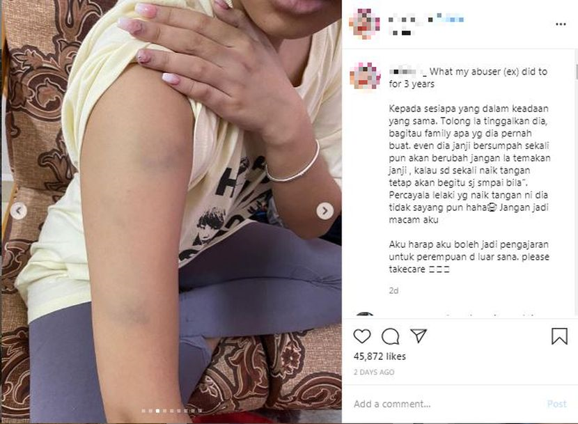 "Saya bertahan sebab dia cakap nak berubah. Setiap kali kena, saya akan sorokkan kesan lebam tak nak mak ayah nampak," ujarnya.