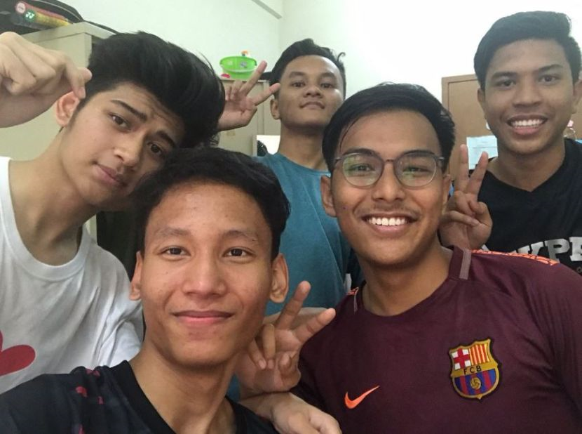 Afiq (paling depan) bersama rakan sebiliknya di Usim.