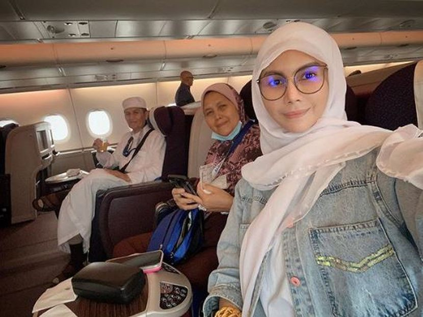 Sajat sewaktu berada dalam penerbangan sebelum berangkat ke Tanah Suci.