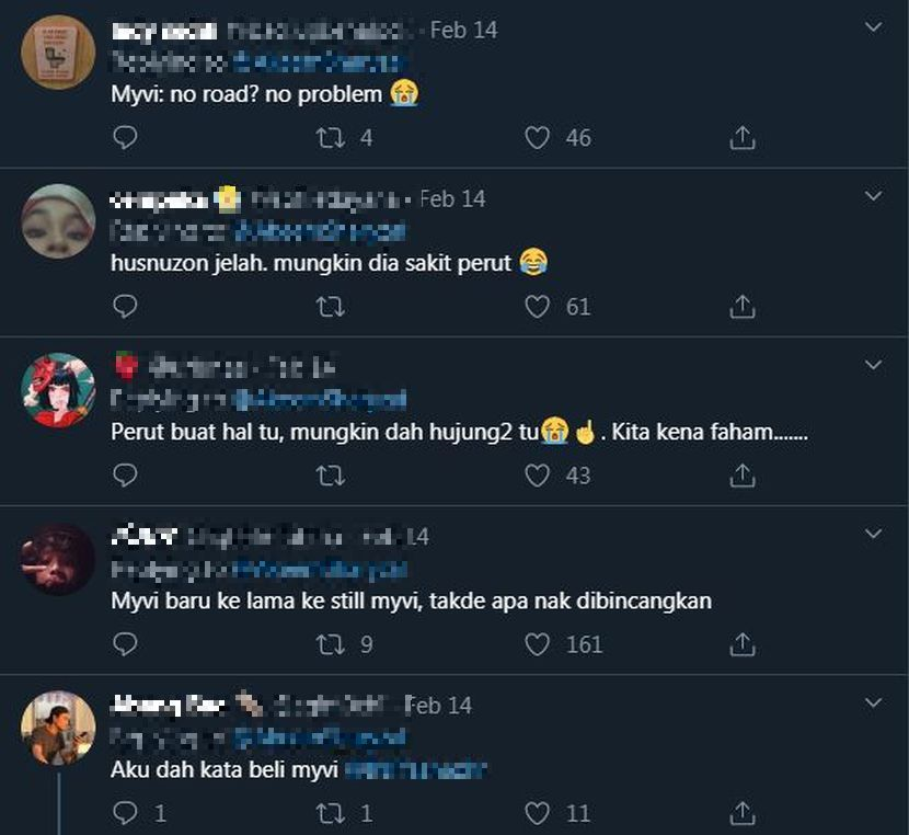 Selain berjenaka, ada juga yang meluahkan rasa terkejut atas tindakan di luar jangka pemandu Myvi tersebut.