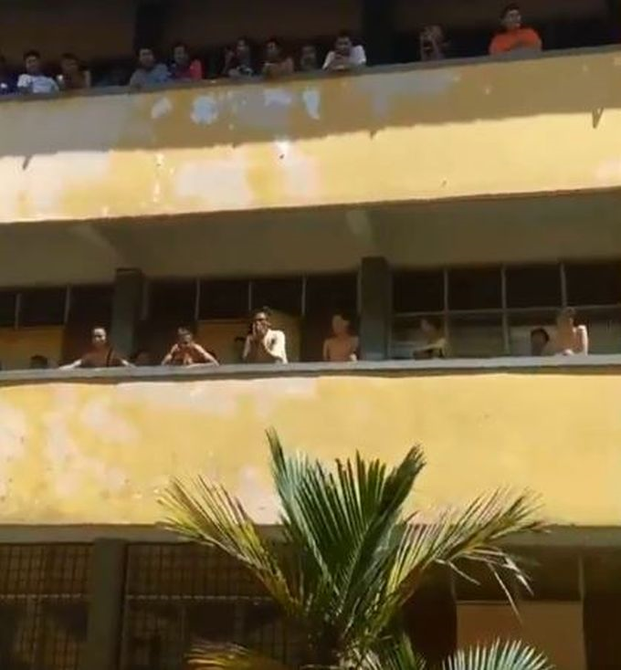 Rakaman tersebut kemudian beralih kepada sebuah blok empat tingkat yang bertentangan, yang mana nyanyian remaja lelaki berkenaan sedang disaksikan oleh sekumpulan pelajar di tingkat tiga dan empat.